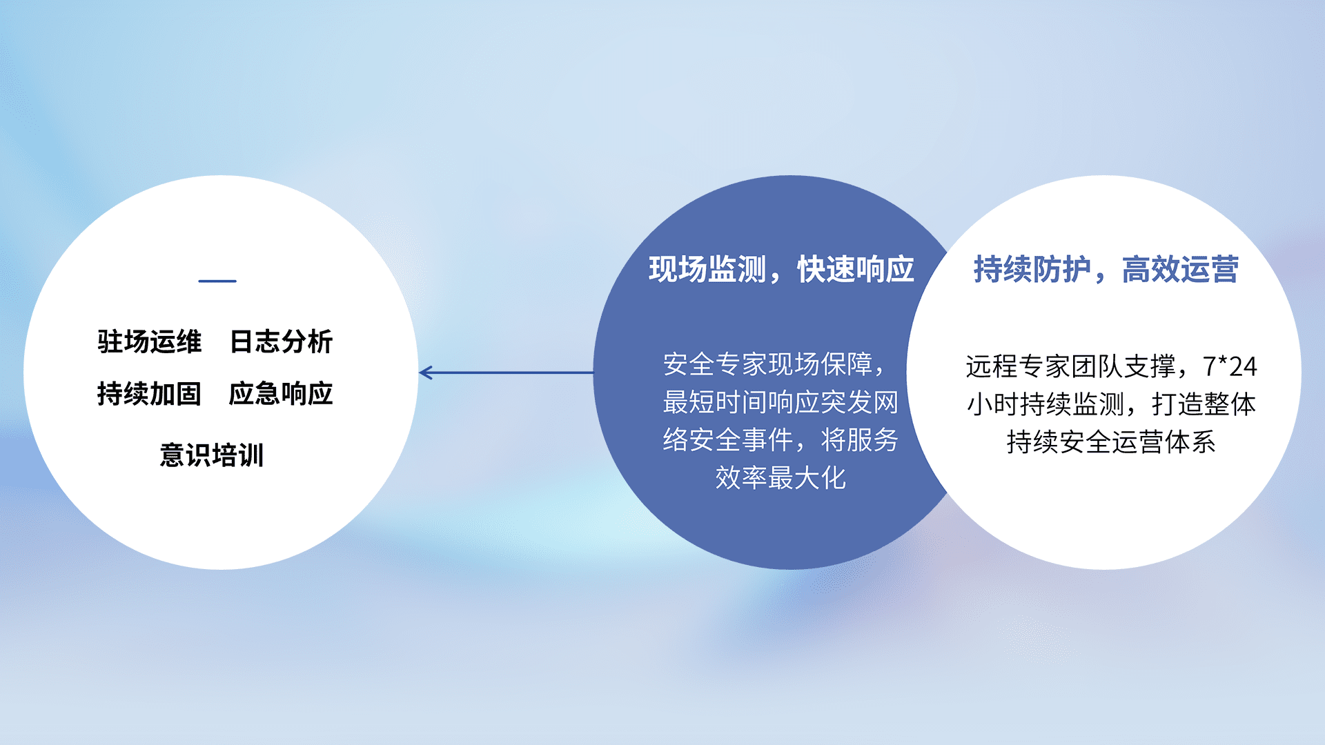 7X24小时持续监测安全事件,保持安全策略有效性,降低资产脆弱性风险,,,,精准拦截黑客攻击,,,减少被黑客利用的机会,,,,第一时间遏制,,,降低损失。。。